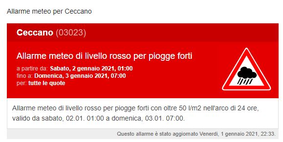 L’allarme del Centro Meteo Allerta Italia passa da arancione a rosso per sabato 2 gennaio