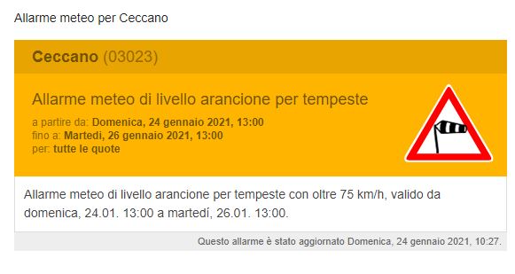 Un nuovo allarme meteo riguarda Ceccano per il vento forte: si attendono raffiche ad oltre 75 kmh
