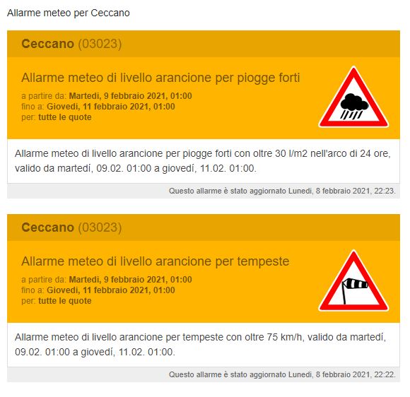Forti piogge e venti di tempesta. Il centro di allerta meteo ha emesso un doppio avviso: si attendono pioggia per oltre 30 litri per metro quadrato e venti con raffiche superiori ai 75 kmh.