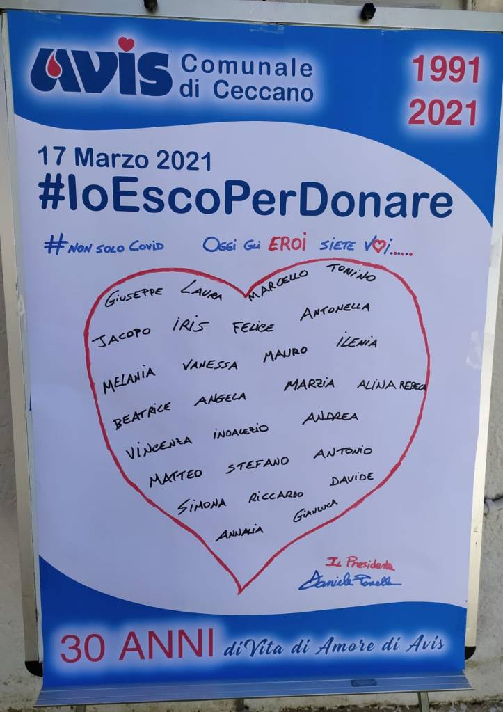 Da 30 anni l’Avis di Ceccano svolge la meritoria opera di diffusione della cultura della donazione e di supporto per la raccolta del sangue dei donatori. Nella giornata di ieri, proprio per il trentennale, sono state raccolte ben 23 sacche ma soprattutto ci sono stati 9 persone che donavano per la prima volta. Grande la soddisfazione del presidente Daniele Panella, che ringrazia tutti per la loro disponibilità e dà l’appuntamento alle prossime donazioni.