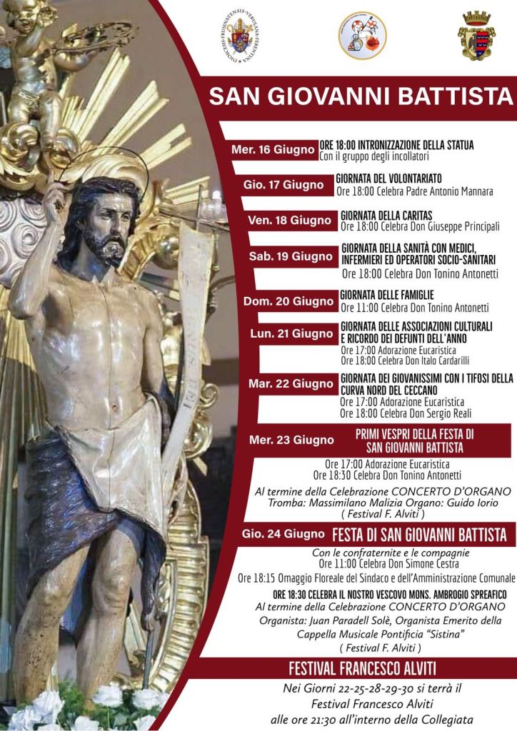Sta ridiventando il patrono di tutti i ceccanesi: ogni giorno, nella insigne collegiata dedicata a S,. Giovanni Battista, si avvicendano le diverse categorie sociali. Ad omaggiare il patrono della città vetuscolana nella novena prima della festa sono stati gli incollatori, poi le associazioni di volontariato, quindi gli operatori delle caritas parrocchiali, impegnati a far fronte alle nuove povertà che dilaniano il vivere civile. Domani, sabato 19 giugno, alle ore 18 sarà la volta dei medici, degli infermieri e degli operatori sanitari, tanto provati in questo tempo di pandemia, quindi toccherà alle famiglie e poi alle associazioni culturali e alle famiglie che hanno subito lutti soprattutto tra i giovani. A conclusione della novena interverranno anche i tifosi della curva nord. E l’arciprete, don Tonino Antonetti, ha chiesto a tutti di collaborare come Giovanni Battista che preparò la via per Gesù. E per tutti i bambini una scheda con i timbri per testimoniare la loro capacità di essere fedeli all’impegno, come il loro patrono.