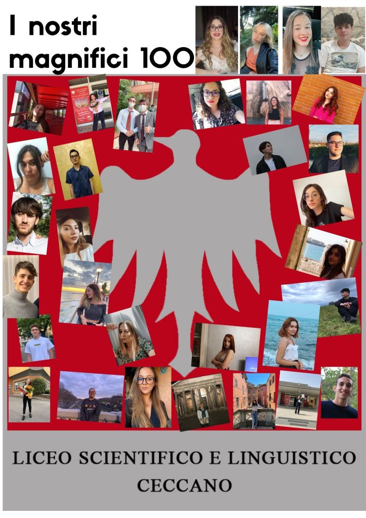 Melania D’Auria e Christian De Vellis, VA, Louise Boudier, Sofia Bragaglia, Annagiulia D’Emilio, Ilenia Marcoccia, Maria Grazia Romano, Angelica Spalvieri e Alessia Verrelli, V B, Lorenzo Capuani, Mirko Coratti, Laura Di Mario, Chiara Gabriele, Stefano Grieco, Cristhian Magliocco, Federico Malizia, Gabriele Marcucci, Paolo Mastrogiacomo e Andrea Zomparelli, VC, Lorenzo Capoccetta, Sara Ceccacci, Marta Costantini,Gianmarco Liburdi e Alessandro Romagna, V D, Erika Altobelli, Fabio Ciotoli, Virginia Federici, Stefano Persiconi, Sara Pizzuti e Giorgia Spinelli, V E, Paola Carrante Ferrante,Arianna Lucarini, Giorgia Orgioni, Nicole Recine, Giulia Trapani, V F, Chiara Angelelli, Maria Luna Dalla Bona, Aurora Iorio, Sara Lisi, Martina Pizzicarola, V G, Luca Cristofanilli e Francesco Maura, V H sono la punta di diamante dei diplomati del Liceo di Ceccano. Hanno avuto la votazione massima, 3 con la lode, a testimonianza di un percorso di studi che li ha preparati ad affrontare le prossime importanti tappe della loro vita. Molti di loro, insieme a tanti altri compagni delle classi V, hanno contribuito in questi anni a rendere vivo il Liceo e a farne una vera famiglia. Hanno messo la loro vivacità e la loro intelligenza nel gruppo dei tutores, nelle diverse manifestazioni, nello sport, nella musica ed in tanti altri momenti della vita della nostra scuola. Hanno vinto tante competizioni nazionali ed internazionali, A loro e a tutti gli studenti che si sono diplomati, la Comunità Educante del Liceo di Ceccano dichiara di essere fiera di averli avuti come allievi ed augura una vita felice e ricca di soddisfazioni e di saper affrontare le difficoltà che inevitabilmente incontreranno, come sono stati in grado di misurarsi con il primo serio esame della loro vita.