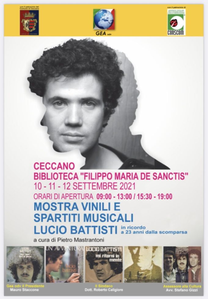 E’ un mangiadischi, sì quell’affarino che inghiottiva il 45 giri e che potevi portare in giro per far ballare gli amici, magari su un prato, ad aprire la mostra su Lucio Battisti, inaugurata stamane in Biblioteca Filippo Maria De Sanctis, a Ceccano. La mostra, curata da Pietro Mastrantoni ed organizzata dall’Associazione Gea, segue la carriera musicale del grande cantautore, dal suo primo 45 giri ai successi della collaborazione con Mogol. La mostra, che gode del patrocinio del Comune e dell’Associazione Conscom Università Popolare, sarà aperta fino a domenica 12 con i seguenti orari: dalle 9 alle 13 e dalle15,30 alle 19.