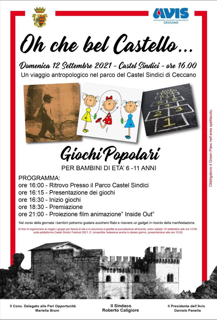Il parco urbano di Castel Sindici offre oggi giochi tradizionali per i bambini. E’ un’iniziativa dell’Avis di Ceccano con il patrocinio del comune. Gli organizzatori l’hanno chiamato un viaggio antropologico nel parco. Inizio alle ore 16