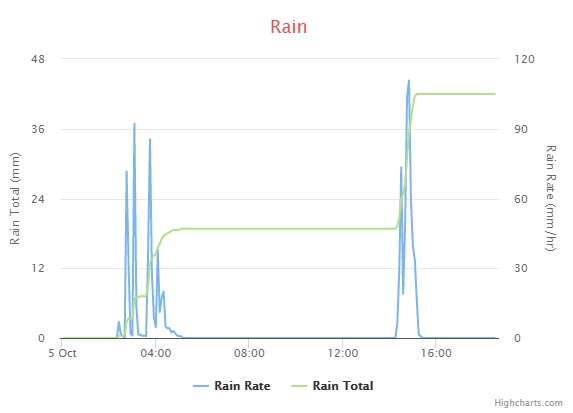Li ha registrati il sito meteoceccano.it, gestito da Amedeo De Rubeis: secondo i dati della stazione meteorologica, la pioggia più violenta c’è stata alle 14,50, con un rateo di 110 mm di precipitazioni ora. Il vento ha raggiunto raffiche di quasi 30 kmh nella notte. Si tratta di un dato quasi 3 volte superiore alle piogge attese secondo le previsioni.