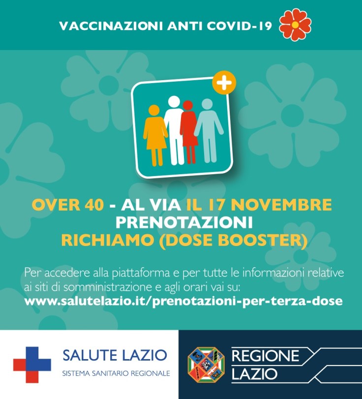 Le somministrazioni inizieranno dal 1° dicembre trascorsi 180 giorni dalla seconda dose. Il sistema collocherà l’utente alla prima data utile. Tutte le informazioni su: https://www.salutelazio.it/prenotazioni-per-terza-dose