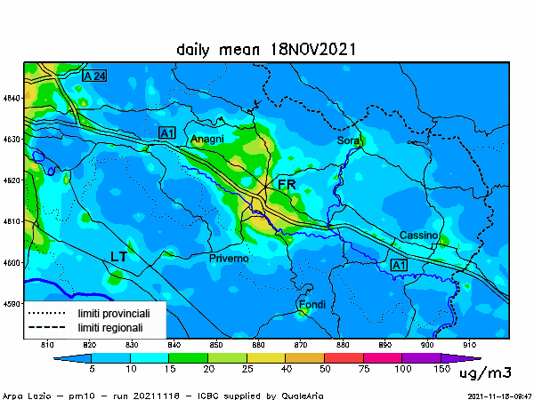 Ai primi freddi, con tempo stabile, riecco le polveri sottili: il 18 novembre le centraline dell’ARPA Lazio hanno registrato una concentrazione media giornaliera di 63 microgrammi per metro cubo a Ceccano e 51 ad Alatri, mentre Frosinone, che domenica 21 novembre inizierà con il primo blocco delle auto, il valore si è fermato a 49. Il limite di legge è 50. Con le rilevazioni odierne, Ceccano conferma il suo triste primato con 45 sforamenti in un anno, seguita da Frosinone con 38 e da Cassino con 35. Il dato conferma come il peggioramento dei valori sia direttamente collegato con l’accensione degli impianti di riscaldamento.