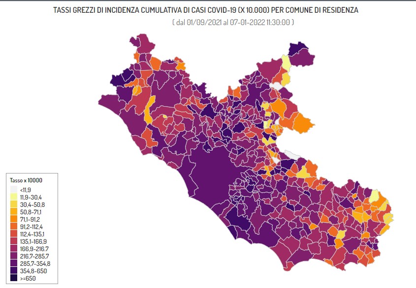 Il Seresmi, il servizio epidemiologico della Regione Lazio, ha pubblicato l’aggiornamento dei contagi da covid al 7 gennaio. Potete trovare la mappa interattiva qui E’ sufficiente cliccare sull’area geografica del comune per avere il valore dei positivi ogni 10 mila abitanti. Ceccano è a quota 512 dal 1° settembre, con un tasso di 227,6 ogni 10 mila abitanti. Frosinone supera i 1200 casi con un tasso pari a 270. Ferentino è a 237 e Anagni a 255. Intanto Palazzo Antonelli ha reso noto che al 6 gennaio i positivi tra i residenti sono 305, di cui 2 ricoverati. A questi vanno aggiunti altri 10 registrati oggi.