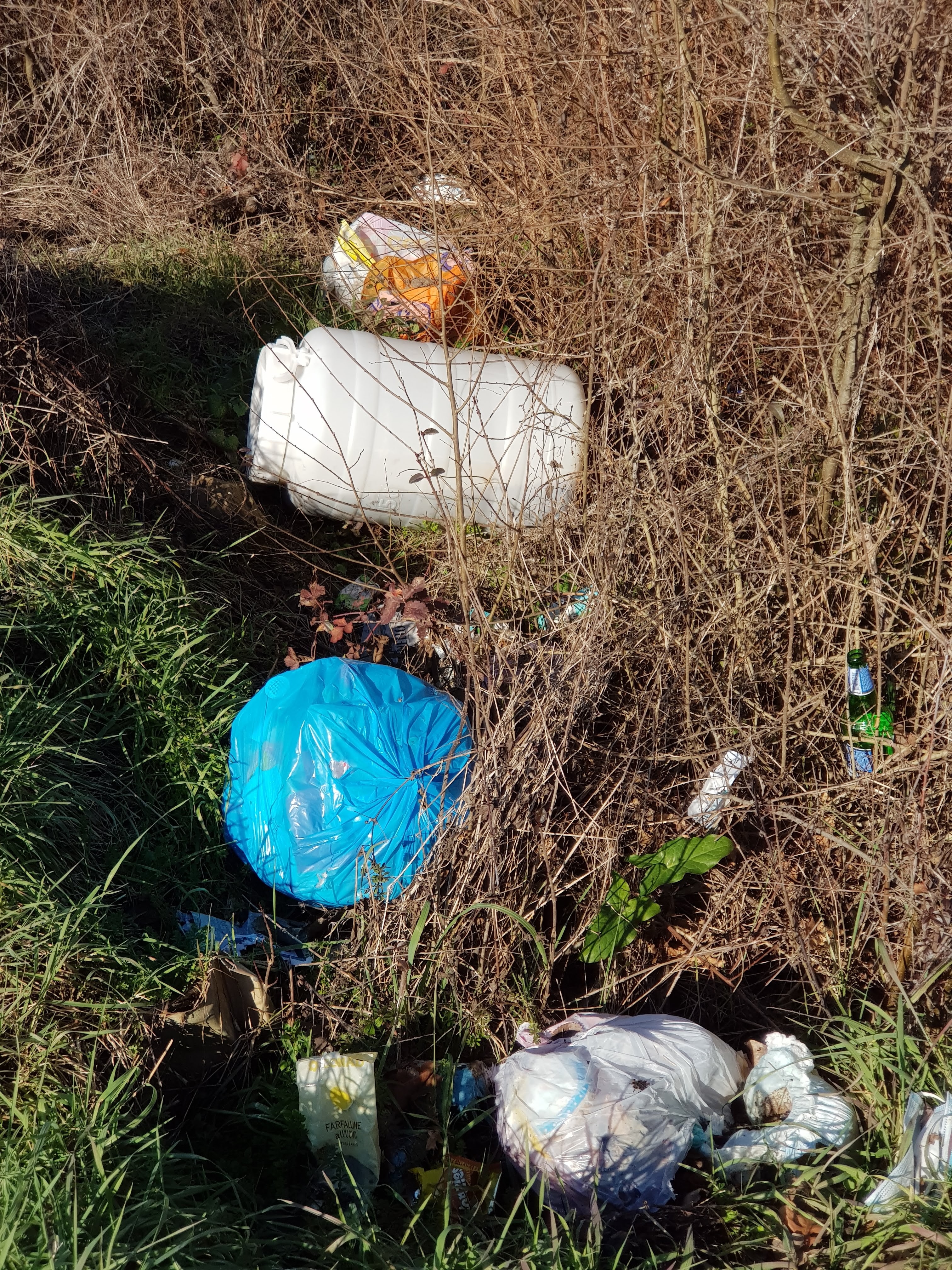 Lanciano le buste direttamente dalle macchine, sono caccanesi specializzati, si apre il finestrino e via, la busta vola sul rovo e lì rimane per anni. Le immagini sono della contrada Cirello, a Ceccano, all’incrocio con la strada Asi, discarica abusiva conosciuta da sempre e più volte bonificata.