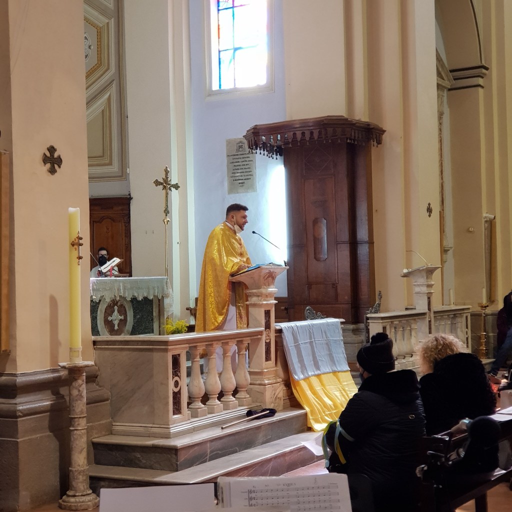Le nostre famiglie, i figli, i nipoti, i mariti di queste donne che sono qui in mezzo a voi vivono da giorni sottoterra, non sappiamo dove siano, non sappiamo se domani potremo sentirli di nuovo. Vogliamo soltanto vivere da ucraini nella nostra terra e non essere sottomessi di nuovo alla Russia. Così don Sviatoslav Tytuliak, sacerdote dell’eparchia greco cattolica in Italia si è rivolto ai ceccanesi riuniti in san Giovanni, una chiesa gremita, commossa dal coraggio di questo giovane prete e delle donne ucraine in pena per le loro famiglie, tutte con un nastrino blu e giallo al braccio. Una di loro ha chiesto aiuto per far arrivare la nipotina di 10 anni in Italia: avrebbe varcato da sola il confine a piedi, pur di fuggire da quella situazione. Se non fossi prete, ha continuato con Sviatoslav, starei lì a combattere anch’io: vogliamo essere liberi nella nostra patria. Il sacerdote ha ringraziato i ceccanesi, accorsi numerosissimi a San Giovanni, sia per la preghiera che per la solidarietà nei confronti dei profughi.