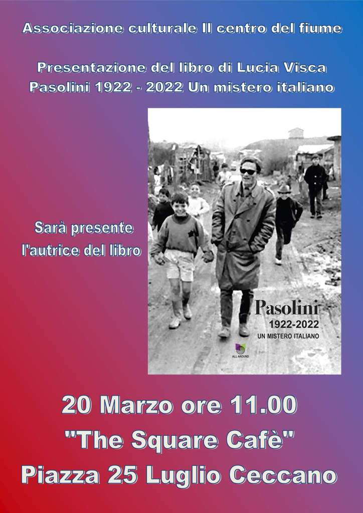 Lo ricorderà Lucia Visca, giornalista e scrittrice, presentando al caffè The Square in Piazza XXV Luglio, il suo libro Pasolini 1922-2022, un mistero italiano. L’iniziativa che avrà luogo domenica 20 marzo 2022 alle ore 11, è a cura dell’Associazione culturale Il centro del fiume, che ha voluto così ricordare lo scrittore e regista Pierpaolo Pasolini, uno dei più grandi artisti italiani del XX secolo. L’ingresso è libero.