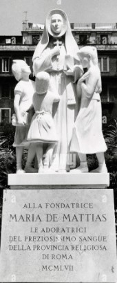 Maria de Mattias nacque il 4 febbraio 1805 a Vallecorsa, in provincia di Frosinone, ultimo paese dello Stato Pontificio. Ricchezza e cultura non mancavano nella sua famiglia – anche se alle donne era proibito studiare – come pure una profonda fede cristiana. Attraverso il dialogo con il papà ella apprese e interiorizzò non solo le verità della fede, ma soprattutto episodi e figure della Sacra Scrittura che egli le leggeva sin dalla tenera età, e sviluppò un grande amore a Gesù, Agnello immolato per la salvezza dell’umanità. Tutto questo avveniva mentre il paese e i dintorni vivevano il periodo tragico del brigantaggio: 1810 – 1825. Nell’anima di Maria, infatti, maturava un confronto tra il sangue umano versato nell’odio e nella vendetta, e quello di Cristo versato per amore, Sangue che salva.