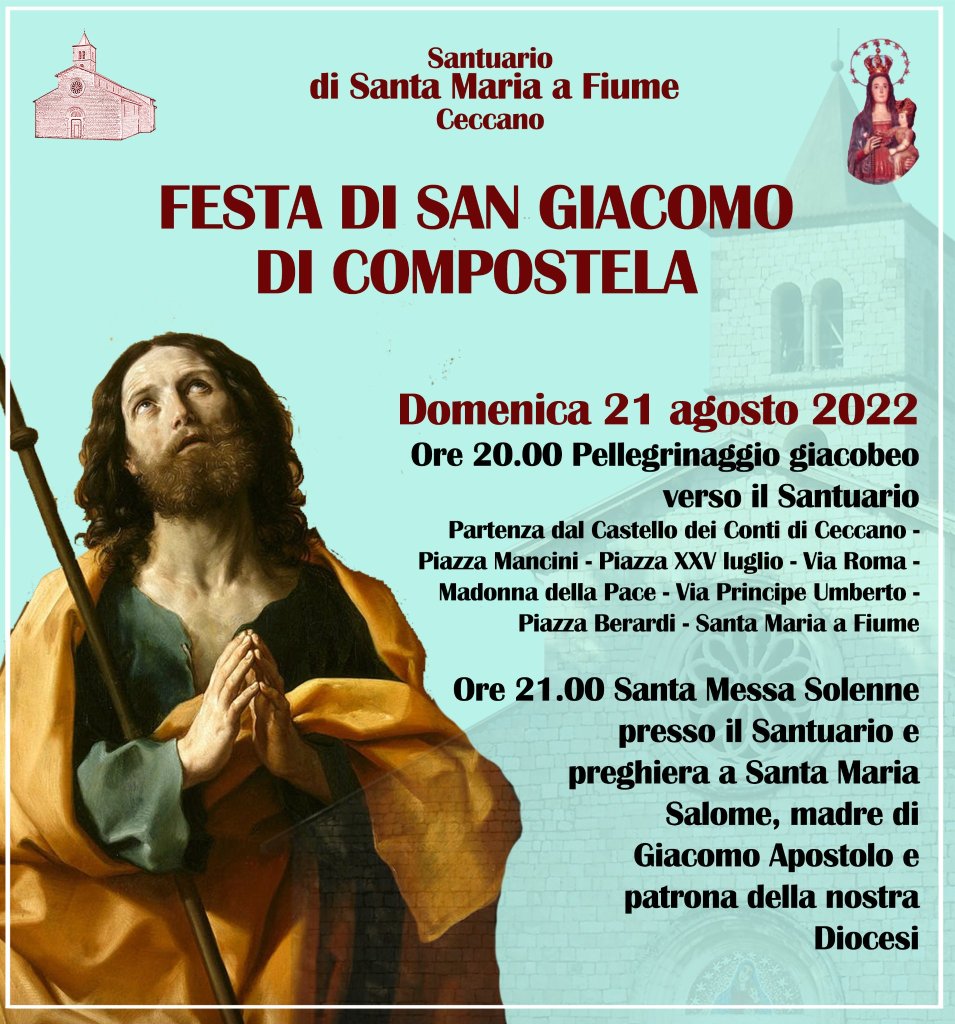 Sono in tanti a fare il Cammino per Santiago de Compostela, uno dei tre grandi centri di pellegrinaggio nella storia occidentale, insieme a S. Pietro in vaticano e al Santo Sepolcro di Gerusalemme. I De Ceccano, signori della Contea, erano particolarmente devoti al santo venerato in Galizia, nell’estremo occidente della Spagna, in finibus terrae appunto. Questa devozione, che nel tempo era confluita nella grande fiera per la vendemmia, il 23 agosto, dedicata appunto a Sant’ Iacu, ora è riproposta alla città con un pellegrinaggio, simbolo di quello a Compostela, che partirà alle 20 di stasera dal castello dei Conti, per concludersi a Santa Maria a fiume dove ci sarà la celebrazione della messa.
