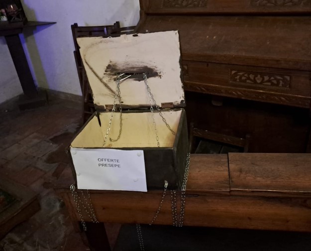 Ne dà notizia la Pro loco che in un post scrive: abbiamo trovato all’interno della Chiesetta della Madonna della Pace la cassetta delle offerte per il presepe scardinata.Il presepe era stato fatto dall’associazione “Il filo che unisce”interamente a mano frutto di lavoro e passione
