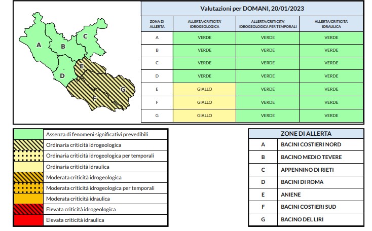 Dal primo pomeriggio di domani, venerdì 20.01.2023, e per le successive 24-30 ore, si prevedono sul Lazio: