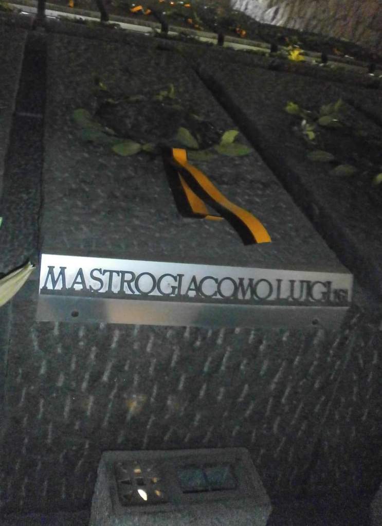 Luigi Mastrogiacomo è sepolto nel sacello 161 del mausoleo delle Fosse Ardeatine. Questo il suo profilo nel mausoleo dove si legge che Luigi dopo l’8 settembre nascose armi nel terreno di casa e nella propria abitazione. Permise che nella sua casa fosse impiantata, dall’organizzazione diretta dal Tenente Maurizio Giglio, una stazione radio trasmittente che trasmise per circa due mesi