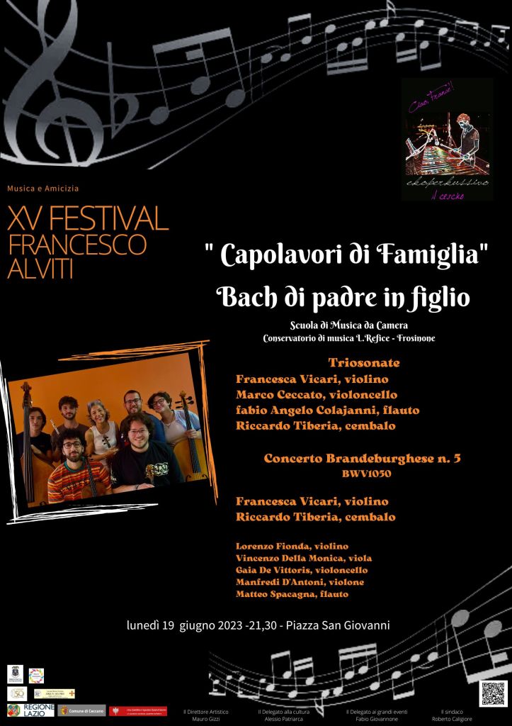 Entreremo in casa Bach per conoscere una famiglia di grandi musicisti formata dal padre Johann Sebastian ma anche da Carl Philipp Emanuel e altri e ci presenteranno due Triosonate, con il flauto di Fabio Angelo Colajanni, Francesca Vicari al violino, Marco Ceccato al violoncello e Riccardo Tiberia al cembalo, per poi passare al Concerto Brandeburghese n. 5 con Francesca Vicari al violino, Riccardo Tiberia al cembalo, Matteo Spacagna al flauto, Lorenzo Fionda al violino, Vincenzo Della Monica alla viola, Gaia De Vittoris al violoncello e Manfredi D’Antoni al violone. La rilettura dei trattati e la riscoperta del linguaggio originale del repertorio barocco hanno visto alla fine del secolo trascorso nascere, crescere ed affermarsi nel panorama musicale europeo ( e non solo) decine di ensemble con strumenti originali che hanno portato all’attenzione del pubblico esecuzioni di un repertorio già molto noto in una nuova versione storicamente informata. Marco Ceccato e Francesca Vicari, docenti del conservatorio di Frosinone, hanno partecipato e tutt’ora partecipano a questo processo come componenti di Ensemble di Musica Antica tra i più affermati del momento.