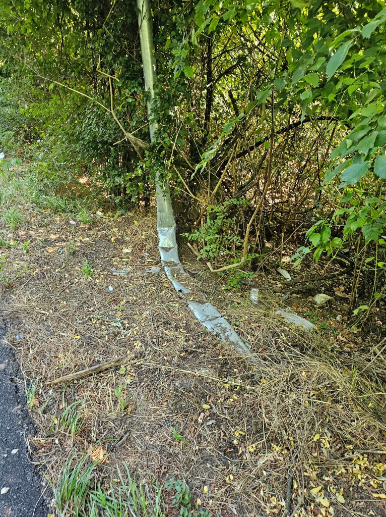 Il palo della pubblica illuminazione è completamente schiacciato, probabilmente urtato da un veicolo pesante, che ha gettato giù il manufatto, finito nella vegetazione a fianco della strada che collega Ceccano con Castro dei Volsci. Nessuno sembra aver segnalato l’incidente. Le indagini sono svolte dalla Polizia Municipale.
