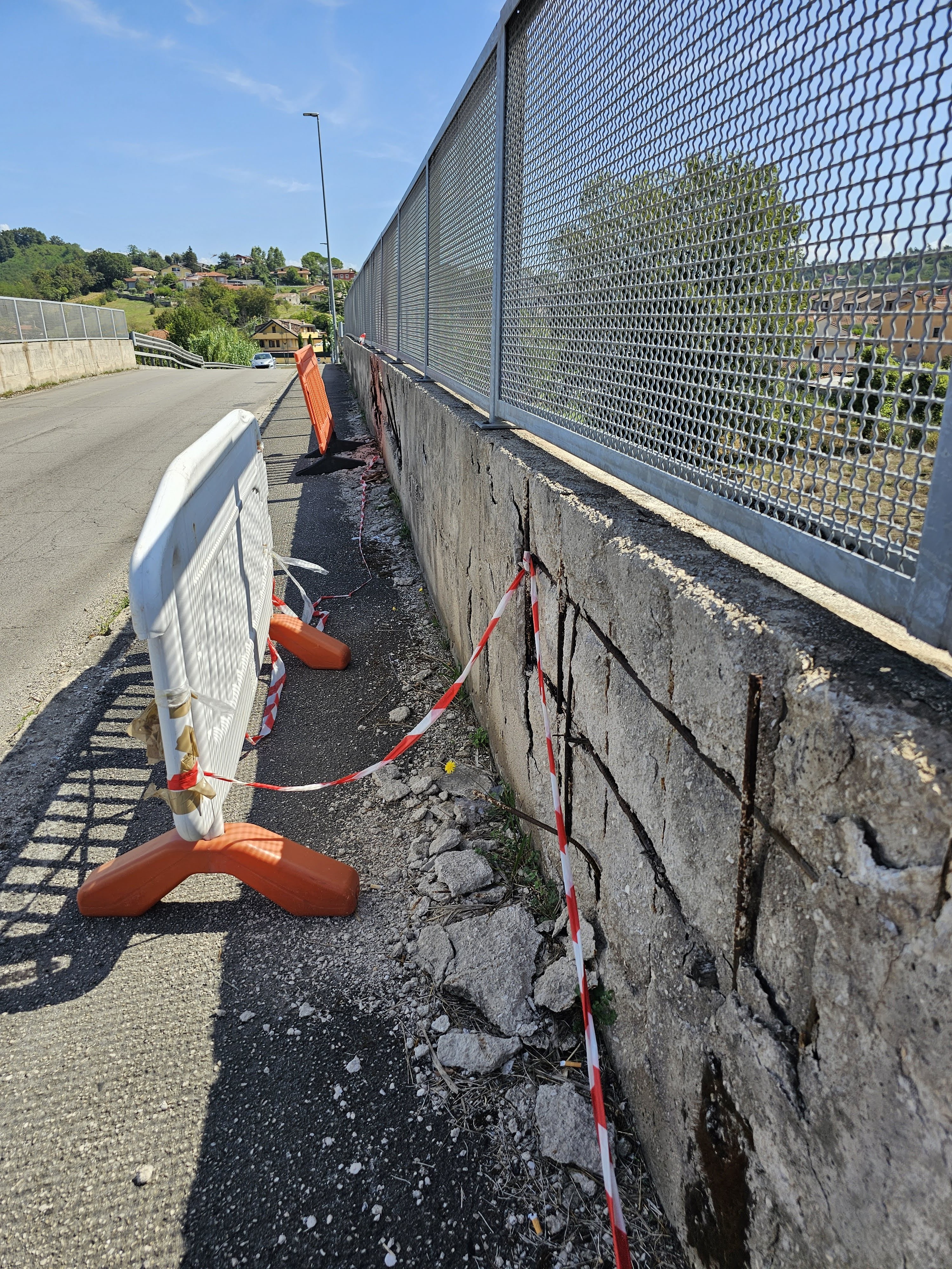 Lo smottamento si vede ad occhio nudo, sia sul lato verso Frosinone che su quello verso Ceccano. Si nota a terra con un evidente affossamento della sede stradale e l’inclinazione del marciapiedi che rende addirittura difficile camminarvi, ma lo si percepisce anche dall’inclinazione dei pali della luce, che sono ben oltre i 100 gradi, in angolo ottuso rispetto alla superficie. Altri segni si notano nelle congiunzioni tra la strada e il ponte, con profonde crepe sia da una parte che dall’altra e anche sulla spalletta dove i ferri del cemento armato sporgono oltre la superficie, con un copioso distacco di pietrisco di diverse dimensioni, che potrebbe cadere di sotto. Stiamo descrivendo la situazione del cavalcavia ferroviario di Passo del Cardinale, oggi elemento essenziale della circolazione tra Ceccano e Frosinone per il suo collegamento tra la Frosinone Gaeta e la Morolense per poi proseguire su viale Fabrateria Vetus. Quel cavalcavia fu progettato e costruito pensando ad un traffico molto più limitato dell’attuale: oggi è attraversato da migliaia di veicoli al giorno, molti dei quali di grandi dimensioni e peso. Bisogna tener poi conto che al di sotto del cavalcavia passano due vie di comunicazione di grande importanza, la ferrovia Roma Napoli via Cassino, con più di cento convogli al giorno, e una strada, via Mulino San Rocco, che assorbe molto del traffico fra Ceccano e Frosinone, oltre a consentire di raggiungere le popolose contrade della Cantinella e di Colle San Paolo. Quel cavalcavia meriterebbe un sopralluogo urgente.
