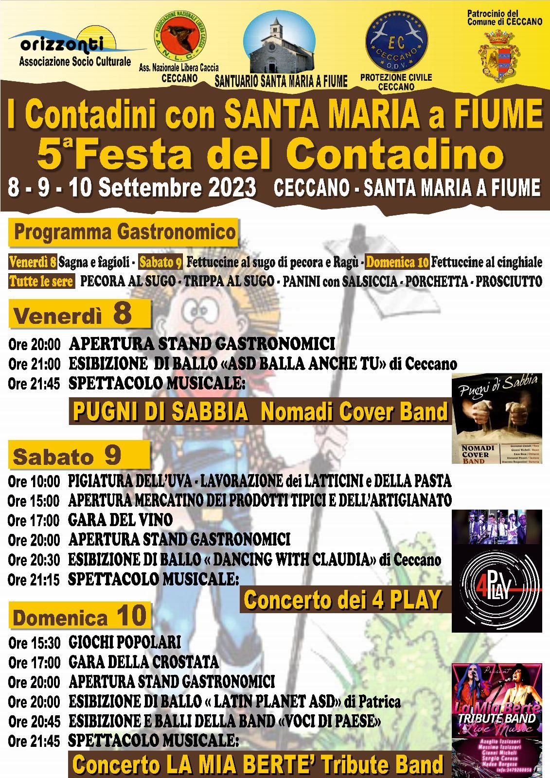 Tre organizzati direttamente dal comune, tra Piazzale Bachelet e Castel Sindici, uno a Santa Maria a fiume, sempre con il patrocinio del comune di Ceccano, tutto nel pomeriggio di sabato 9 settembre. A Piazzale Bachelet se ne svolgeranno due, l’Iniziativa Sportiva…mente, finanziata dalla Regione, con un contributo di 13 mila euro, che si sarebbe dovuta svolgere su tre gorni e che invece è limitata al solo pomeriggio del sabato, e la Festa di fine estate. Contemporaneamente, a Castel Sindici, si svolgerà Gli alberi sono poesie, con la piantumazione di nuovi alberi nel bosco urbano. Tutte e tre le manifestazioni hanno gli stessi orari, almeno nei manifesti. Quello stesso pomeriggio, a Santa Maria a fiume si svolgerà la seconda giornata della Festa del Contadino. Una domanda: possibile non si poteva spostare qualcosa alla domenica, o al venerdì precedente?