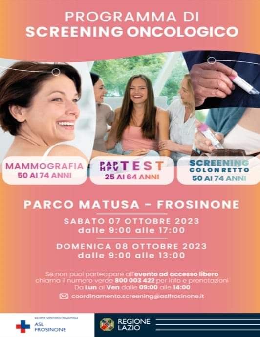 La Regione Lazio dedica un programma speciale pensato per tutte le donne che hanno tra i 45 e i 49 anni che potranno fare una mammografia gratuita. Basta chiamare il numero 06 164161840, lun-ven ore 7.30-19.30 e sab ore 7.30-13 (fino ad esaurimento delle disponibilità). Ecco intanto la locandina dell’iniziativa di Frosinone che riguarda tutte le donne, indipendentemente dall’età.