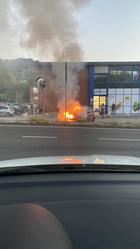 Ci sono i vigili del fuoco ad arginare le fiamme che ancora divampano nella carcassa dell’auto parcheggiata di fronte ad un supermercato in via Matteotti a Ceccano: i passanti, verso le 18,30 di lunedì 9 ottobre, hanno udito prima un forte botto e poi hanno visto la macchina avvolta dalle fiamme. Un’alta nuvola di fumo nero si è levata nell’atmosfera. Per fortuna non ci sono stati feriti, anche se i curiosi sono rimasti, a lungo, pericolosamente vicini all’automobile incendiata.