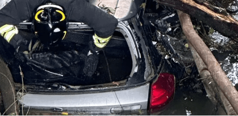 E’ nel fossato tra la strada e la ferrovia, sulla Frosinone Gaeta, proprio al famoso km 88 della ferrovia, che dà il nome alla zona, dal passaggio a livello che vi esisteva fino a qualche decennio fa e collegava Colle Leo con l’antica via Marittima: al momento non sembrano esserci persone a bordo ma si sta aspettando la gru per sollevarla e verificare.