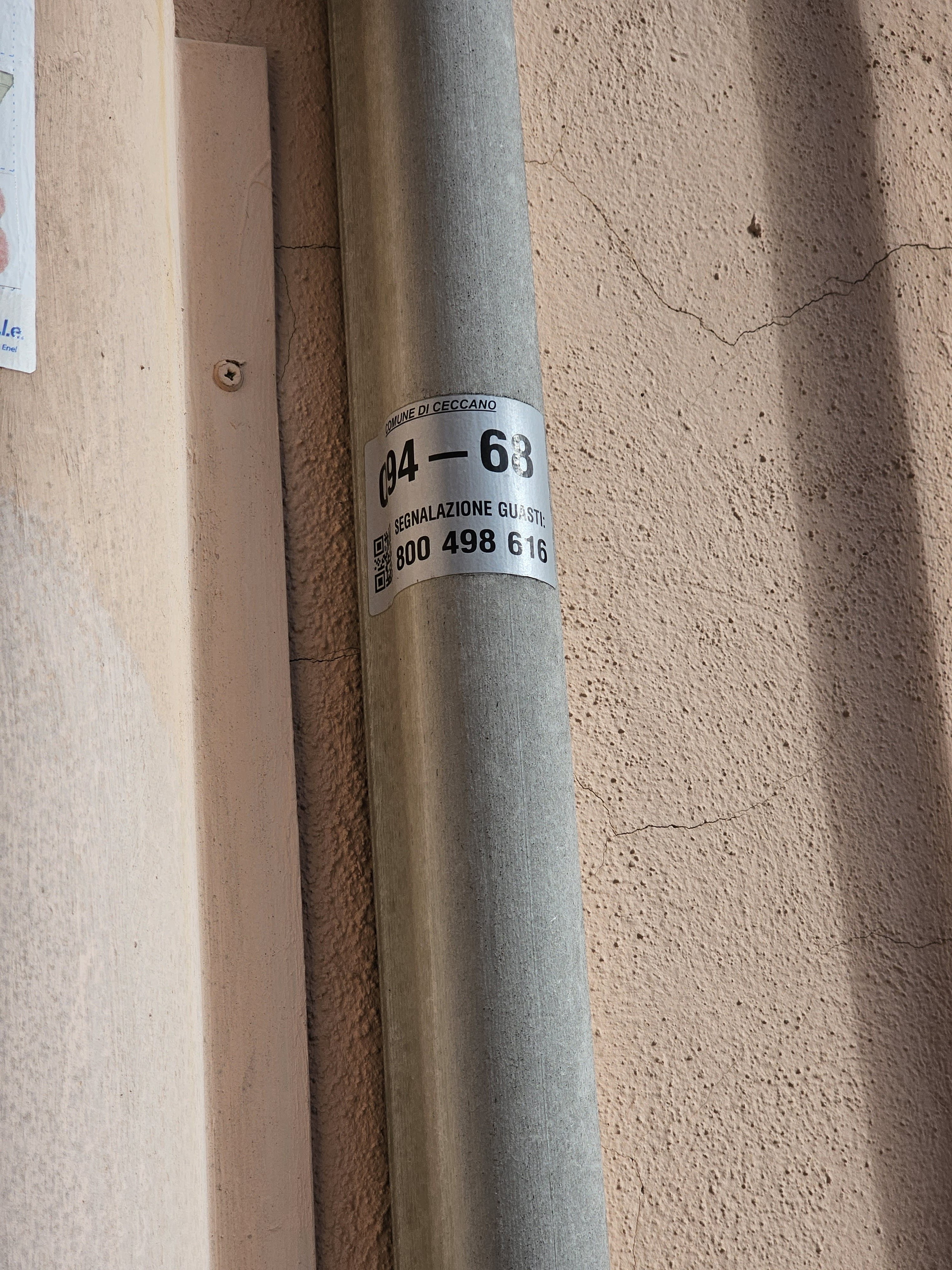Ce lo segnala uno dei nostri lettori che scrive: Una targhetta adesiva, posta su ogni singolo punto luce, riporta il numero verde gratuito anche da cellulare, da chiamare per segnalare il guasto. La stessa targhetta evidenzia inoltre l’identificativo univoco sia del singolo punto luce che dell’impianto a cui è collegato per una precisa individuazione del guasto. p. es. ” Q 8 – 12″ che specifica ” Quadro n. 8, punto luce n. 12″.