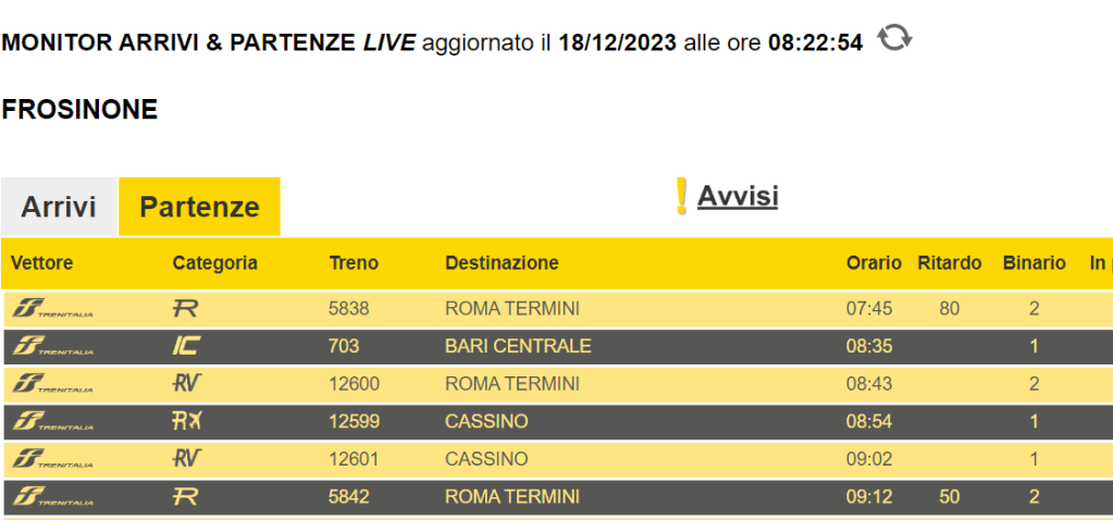 Comincia malissimo anche questa settimana per i pendolari della Roma Cassino, con ritardi fino a 90 minuti. Per Trenitalia, lunedì 18 dicembre, ore 8, la circolazione è ancora fortemente rallentata, in corso l’intervento dei tecnici, i I treni Intercity possono registrare maggiori tempi di percorrenza fino a 90 minuti e subire limitazioni di percorso. I treni Regionali possono registrare maggiori tempi di percorrenza fino a 40 minuti e subire cancellazioni, limitazioni di percorso e sostituzioni con bus.