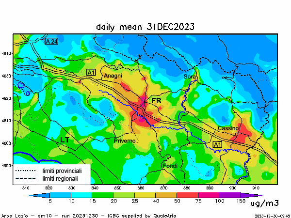 Nell’immagine, tratta dal sito di ArpaLazio, potete vedere la previsione della qualità dell’aria per il 31 dicembre