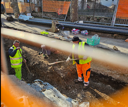 Centimetro per centimetro, così si avanza nel lavoro degli archeologi della sovrintendenza impegnati nel rilievo dei ritrovamenti lungo via S. Francesco a Ceccano, dove erano in corso lavori di metanizzazione. E’ ancora presto per conoscere la natura di quanto trovato, che si trova a pochi centimetri dalla superficie stradale. Sarà necessario probabilmente scavare di più per capire meglio. L’area è nota per aver ospitato in epoca romana un complesso termale, come testimoniato dalle numerose lapidi utilizzate per l’edificazione di S. Maria a fiume, a poche decine di metri di distanza.