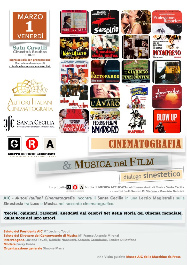 Provate ad immaginare un film senza musica, senza la sua colonna sonora come la chiamiamo comunemente. Vedremmo sicuramente un’altra cosa: sono le stesse immagini, ma senza la musica tutto cambierebbe. Ne parlano in questi giorni Jerry Guida e Sandro Di Stefano in una serie di incontri dibattito che hanno la scopo di far capire come la musica non sia un semplice commento alla trama ma costituisca un valore aggiunto alla scena. Domani, 23 febbraio, alle ore 17 Jerry Guida e Sandro Di Stefano ne discuteranno al caffè letterario di Ceccano presentando il libro scritto da Guida in occasione dei 50 anni del film Profumo di donna di Dino Risi. Con loro ci sarà anche Amedeo Di Sora. Il 1° marzo invece il confronto si terrà presso la Sala Cavalli nei Cinecittà Studios di Roma, con un’iniziativa che vede la Composizione di Musica Applicata del Conservatorio Santa Cecilia incontrare la società AIC – Autori Italiani Cinematografia, nel tema “Luce e Musica : un dialogo sinestetico”. L’appuntamento è per le ore 10,30 con prenotazione obbligatoria