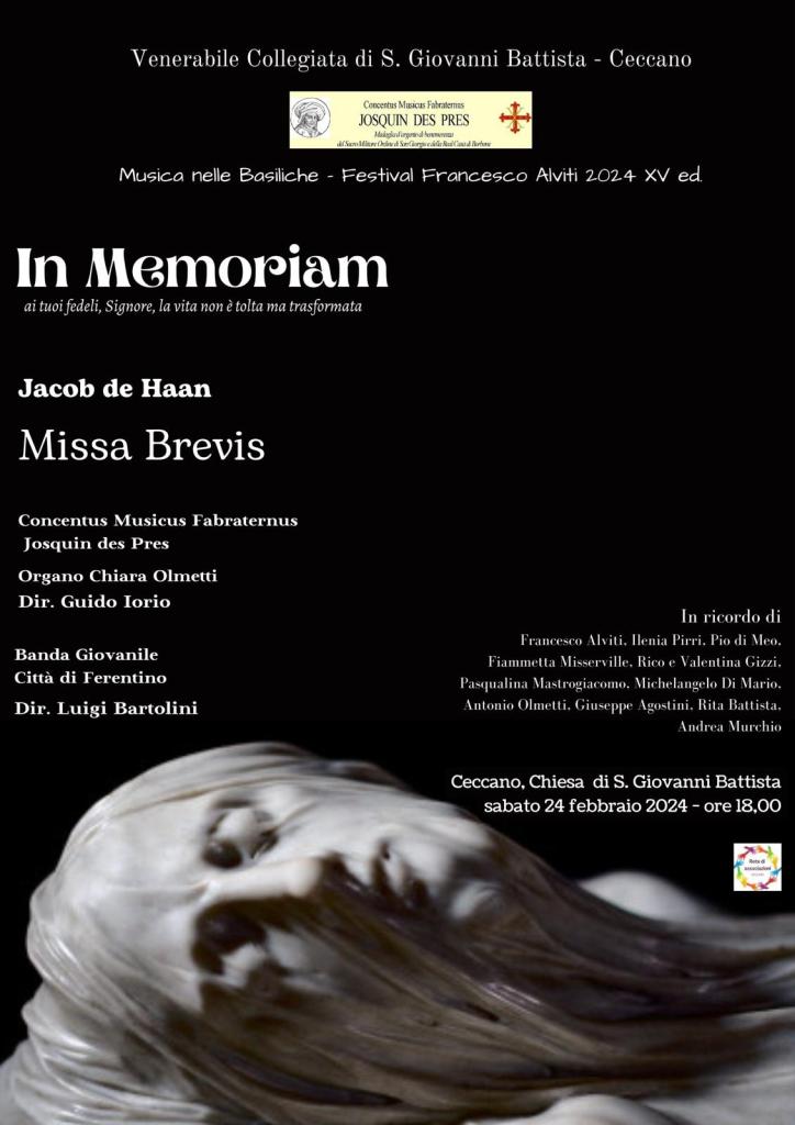 L’armonia vince lo scandalo della morte, l’inaccettabile drammatica realtà si stempera nel suono di voci e strumenti che ricostruiscono un disegno che può apparire incomprensibile ma che sicuramente c’è e restituisce speranza di fronte alla tragedia. Francesco Alviti, Ilenia Pirri, Pio di Meo, Fiammetta Misserville, Rico e Valentina Gizzi, Pasqualina Mastrogiacomo, Michelangelo Di Mario, Antonio Olmetti, Giuseppe Agostini, Rita Battista, Andrea Murchio e tanti altri, accomunati dalla passione per la musica e l’arte, saranno ricordati sabato 24 febbraio, alle ore 18, nella Collegiata di San Giovanni battista a Ceccano, con una liturgia di suffragio con l’ordinario della Missa Brevis di Jacob De Haan, per coro e orchestra, nell’occasione del XV anniversario della scomparsa del giovane percussionista che a 22 anni aveva vanamente lottato contro la sua malattia. Ad interpretare i brani di De Haan, il Concentus Musicus Fabraternus Josquin Des Pres, con la direzione di Guido Iorio, con Chiara Olmetti all’organo, e la Banda Giovanile di Ferentino, diretta da Luigi Bartolini. La Banda di Ferentino è il complesso musicale in cui Francesco crebbe ed esordì musicalmente come percussionista.