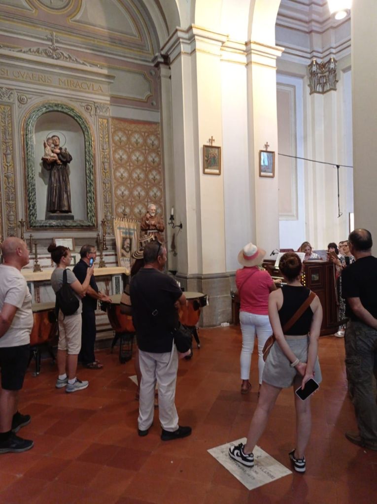 Quest’ultima giornata con gli amici colombiani è stata molto emozionante. Ci hanno raggiunto da Roma con il treno e abbiamo visitato insieme alcuni luoghi chiave di Ceccano, tra cui il santuario di Santa Maria a Fiume, Castel Sindici, San Nicola, il Monumento ai Caduti e la Collegiata di San Giovanni Battista, culmine della visita in quanto luogo dove venne battezzato il nostro illustre concittadino. Grazie alla sempre squisita disponibilità del prof Pietro Alviti e della Prof.ssa Vittoria D’Annibale con alcuni membri del coro di S. Giovanni, è stato suonato e cantato l’inno di Colombia in omaggio ai nostri ospiti. L’emozione è stata fortissima e i nostri amici d’oltreoceano hanno sentito in questa piccola realtà del centro Italia, un pezzo della loro terra d’origine. Presto organizzeremo altre giornate simili e con altri colombiani residenti nel nostro paese, con l’obiettivo di rafforzare ancora di più questo legame e lavorare congiuntamente con associazioni ed enti oltreoceano, al fine di ricordare e tramandare la figura del Maestro Sindici