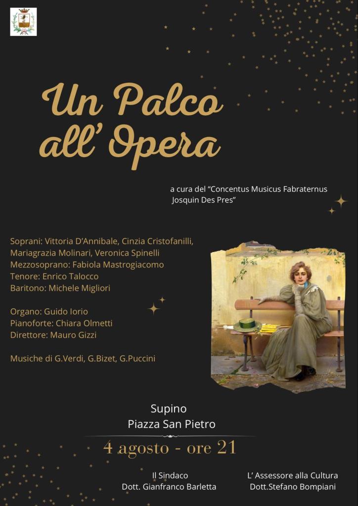 Il 4 agosto, alle ore 21, Piazza San Pietro a Supino sarà il suggestivo scenario del concerto “Un palco all’opera”, organizzato dal Comune e curato dal Concentus Musicus Fabraternus Josquin Des Pres. L’evento, si legge nel comunicato del comune, sarà un’esperienza imperdibile per gli amanti della musica classica e dell’opera. Si esibiranno i soprani Vittoria D’Annibale, Cinzia Cristofanilli, Mariagrazia Molinari, Veronica Spinelli, il mezzosoprano, Fabiola Mastrogiacomo, il tenore: Enrico Talocco, il baritono, Michele Migliori. All’organo Guido Iorio e al pianoforte Chiara Olmetti. La direzione è di Mauro Gizzi.