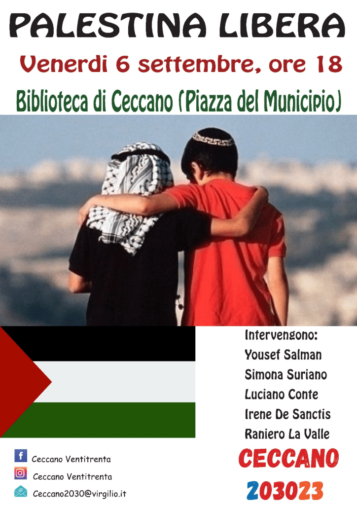 Ci sarà anche Raniero la Valle alla manifestazione organizzata da Ceccano ventitrenta nella biblioteca comunale in favore della liberazione della Palestina, venerdì 6 settembre alle ore 18. La Valle è stato deputato e senatore della Repubblica in diverse forze della sinistra. Giornalista, fu direttore dell’Avvenire dal 61 al 67, proprio negli anni del Concilio Vaticano II. In quei decenni Raniero La Valle è stato uno dei più autorevoli intellettuali cattolici. Attualmente presiede il Comitato per la democrazia internazionale. Con lui interverranno Youssef Salman, medico, autorevole rappresentante della comunità palestinese di Roma, Simona Suriano, lei pure già deputata della Repubblica per il Movimento 5 Stelle, Luciano Conte, candidato alla recenti elezioni del Parlamento europeo, Irene De Sanctis
