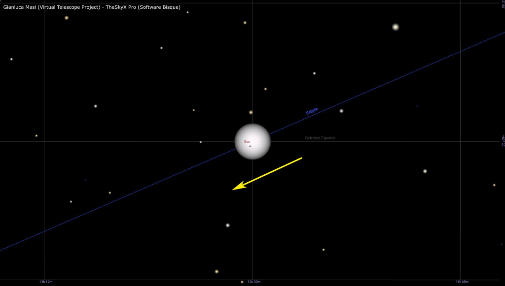 Alle ore 14:44 del 22 settembre, il Sole, nel suo moto apparente tra le stelle lungo l’eclittica (ovvero la proiezione in cielo dell’orbita della Terra), incrocia da Nord verso Sud l’equatore celeste (ossia la proiezione in cielo dell’equatore della Terra). Un traguardo importante, che segna l’arrivo astronomico di una nuova stagione: l’autunno per l’emisfero nord (che dunque congeda l’estate), la primavera per l’emisfero australe (che lascia l’inverno alle sue spalle). Come evidente dalla sua etimologia (dalla locuzione aequa nox, cioè “notte uguale (al dì)”, derivata dal latino aequĭnoctĭum), all’equinozio il centro del disco solare rimane per lo stesso numero di ore sia sopra che sotto l’orizzonte: una “equa” spartizione tra dì e notte, al netto dei crepuscoli, del lento moto apparente del Sole (che non si ferma all’equinozio!) e della rifrazione atmosferica. Da questo momento, l’emisfero nord vedrà ridursi costantemente la durata del dì a vantaggio di quella della notte, con la felicità degli amanti delle stelle, fino al culmine del solstizio di dicembre, quello d’inverno. Per l’emisfero australe, sarà la notte ad assottigliarsi sempre più, andando verso l’estate. Al polo nord, poi, inizia la lunga notte artica, al polo sud, invece, l’interminabile dì antartico.