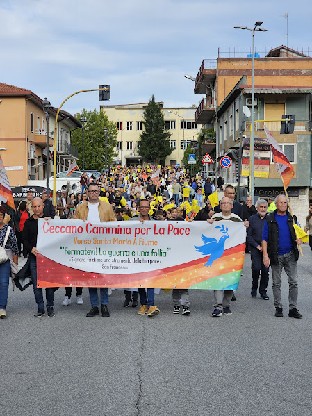 Sono stati in tanti a camminare per la pace oggi a Ceccano, in risposta all’appello rivolto da papa Francesco ai cristiani di tutto il mondo. Il corteo si è snodato dalla stazione ferroviaria, poi davanti la statua di S. Francesco a Borgo Berardi, quindi sul ponte e infine a Santa Maria: in ognuna delle tappe si è ricordata una dimensione della vita in cui la pace è essenziale. Alla stazione, che tanti pendolari utilizzano per raggiungere il lavoro, il dramma delle disuguaglianze sociali che fanno perdere dignità agli esseri umani; davanti a S. Francesco il coraggio di prendere decisioni coraggiose come quella del fraticello d’Assisi che non esitò ad andare a parlare con il sultano, nell’infuocato clima delle crociate; e poi il ponte sul fiume Sacco, simbolo di quanto male abbiamo provocato all’ambiente, fino a S. Maria a fiume, distrutta dalle bombe ma ricostruita pietra su pietra. Nel santuario mariano i partecipanti alla marcia si sono incontrati con il vescovo, mons. Ambrogio Spreafico. Abbiamo bisogno di pace, avete camminato per invocare la pace, troppe donne e uomini piangono in questi momenti. – ha esordito il presule – Le guerre non servono a niente. Non ci sono guerre giuste. la violenza non è ammessa, basta, rimetti la spada nel fodero, anche quando litighiamo siamo violenti, dobbiamo fare pace . La pace – ha continuato – si costruisce con i gesti e le parole. siamo fatti per essere ognuno a fianco degli altri. Spesso non vogliamo nessuno a fianco. spesso anzi siamo infastiditi dagli altri. Al contrario, dobbiamo imparare a convivere con le nostre diversità. Ci sono altri con i quali non vogliamo avere niente a che fare, profughi in fuga dalle guerre e dalla fame. Ma dobbiamo capire che il mondo è fatto di popolazioni che si muovono da una parte all’altra. La pace dipende da ciascuno di noi, cominciamo a costruirla dal nostro ambiente, dalle nostre amicizie, dalle nostre famiglie, aiutando di più quelli che hanno bisogno di più. Alla marcia hanno partecipato i parroci di tutta la Vicaria di Ceccano, le associazioni della rete coordinata dalla Proloco di Ceccano e tanti cittadini che hanno voluto esprimere così il loro desiderio di pace.