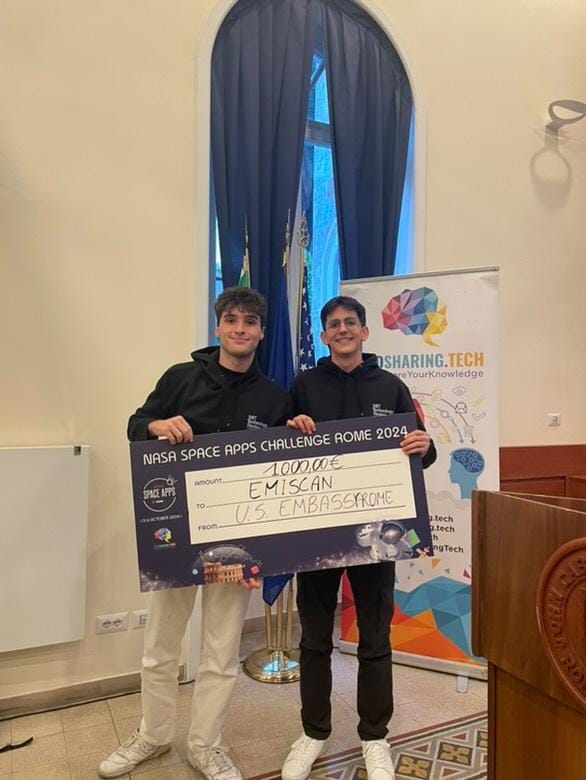 Alessandro Aldini e Francesco Massa fanno doppietta alla Nasa Space Apps Challenge 2024 e al Quartier Generale dell’Ente Spaziale Americano cominciano a chiedersi che cosa ci sia in questa città, Ceccano, e in quella scuola, che nel volgere di pochi anni ha portato i giovani allievi del Liceo a vincere ripetutamente la gara, il Challenge, come si dice. Ogni anno, la NASA indice questa gara che consiste nei mettere in competizione fra loro diversi gruppi (teams) di giovani. La competizione si tiene all’interno dell’Ambasciata degli Stati Uniti a Roma: nel volgere di due giornate i gruppi devono elaborare un progetto che sia effettivamente praticabile e sostenibile, sotto tutti i punti di vista. E, anche per quest’anno, altri due ragazzi di Ceccano, ancora liceali, con la passione per le tecnologie, business e sviluppo di Intelligenza artificiale, (AI) hanno vinto per la seconda volta di fila la competizione con il progetto EmiScan. La sfida scelta, tra quelle proposte dalla Nasa, consiste nel creare un programma che renda facilmente visualizzabili le emissioni globali di agenti inquinanti. I ragazzi sono riusciti a creare un prototipo funzionante in soli due giorni, che, insieme alla presentazione, ha contribuito alla loro vittoria, tutto in inglese, naturalmente. “Siamo felici di essere tornati da vincitori e di aver nuovamente dimostrato il nostro valore. Dall’anno scorso abbiamo compiuto molti altri passi avanti nella nostra vita e questa è stata un’altra grande conferma. Ci tenevamo a ringraziare tutte le persone che hanno reso possibile queste nostre avventure e in primis Engine4You. Sono loro infatti che credono sempre in noi e ci hanno avviato verso questo mondo e dato le basi solide da cui siamo partiti.