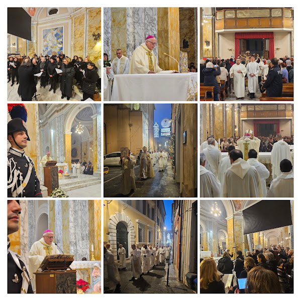 Un popolo che cammina insieme per rinnovare la forza d’amore che ci è stata donata. Così il vescovo di Frosinone, Ambrogio Spreafico, ha accolto i tanti fedeli accorsi per la celebrazione d’apertura del giubileo 2025 a Frosinone, nella serata di domenica 29 dicembre. La processione è iniziata a S. Benedetto e ha raggiunto poi la cattedrale di S. Maria Assunta: nel Giubileo – ha detto il vescovo nell’omelia – ciascuno tornava in possesso di ciò che aveva perduto. Noi siamo convinti di essere creditori e non ammettiamo mai di dovere tanto agli altri, a cominciare da Dio. Dobbiamo chiederci cosa avremmo potuto fare per qualcuno e non.l’ abbiamo fatto? Il vescovo ha poi evidenziato che c’è un desiderio di perdono, di indulgenza. Il signore ci attende sempre. Gesù vuol dialogare con noi. Ci parla e ci ascolta per aiutarci a vivere felici. Facciamo posto a Dio nella nostra vita, anche noi lo perdiamo di vista, la fretta non ci consente di capire, di pensare e così perdiamo Gesù ma, se noi vogliamo, lui si farà sempre trovare. Liberiamoci dall’odio – ha concluso mons. Spreafico – impariamo ad essere miti, panificatori, senza paura, ripieni di speranza, per un tempo di pace, di amicizia, di solidarietà. Questo è il tempo del perdono. Il giubileo liberi le energie di bene che sono in tutti anche in coloro che hanno commesso il male. Ognuno di noi possa vincere il male con il bene.