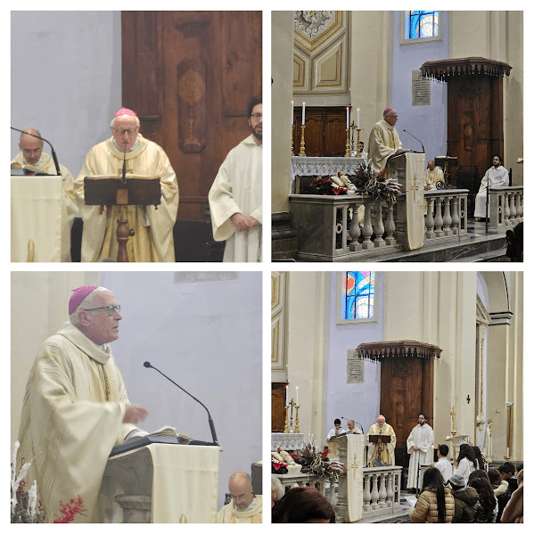 Le parole del vescovo Spreafico a San Giovanni, Ceccano, domenica 5 gennaio: Gesù è il nuovo inizio, una nuova creazione che cambia il corso della storia. E per noi: è davvero un cambiamento o un’abitudine? Senza Fraternità non si vive, ma noi viviamo in un mondo di imperatori, gli uni contro gli altri. Questo è il Natale, un cambiamento che deve coinvolgere la nostra vita. eppure viviamo in un mondo in cui viene esaltata la violenza che lentamente entra nei cuori di tutti e diventa un modo di vivere, di regolare i rapporti umani, li appesantisce, li porta fino al delitto. molto spesso ci sentiamo vittime, non ci rendiamo conto delle nostre responsabilità . Invece la vita del cristiano dovrebbe essere sempre piena di gratitudine per tutti i doni che abbiamo ricevuto e che invece ci appaiono scontati. Basterebbe pensare che in ciascuno di noi c’è l’immagine di Dio ma non vogliamo vederla, schiavi dei nostri pregiudizi. la fede ci dà una forza straordinaria che ci aiuta a guardare avanti al futuro, nonostante tutti i segnali contraddittori che ci circondano. E questa speranza può trasformare anche la città, al di là delle divisioni e delle contrapposizioni. I cristiani devono essere segni di speranza e di unità.