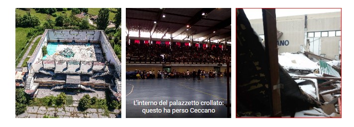 Venne giù sotto il peso della neve, era il 3 febbraio del 2012, per fortuna senza che nessuno si facesse male. Sono passati 13 anni e i ruderi del palazzetto dello sport intitolato a Domenico Tiberia sono ancora lì: 4 amministrazioni comunali si sono susseguite da allora, senza riuscire neppure a togliere quello che è rimasto. Quanto tempo sarà ancora necessario per avere un nuovo Palazzetto dello Sport a Ceccano? Per quanto tempo ancora le valide formazioni sportive di Ceccano, ginnastica, jumping, pallavolo, pallamano, judo, arti marziali, boxe, dovranno fare a meno di una struttura degna di questo nome?