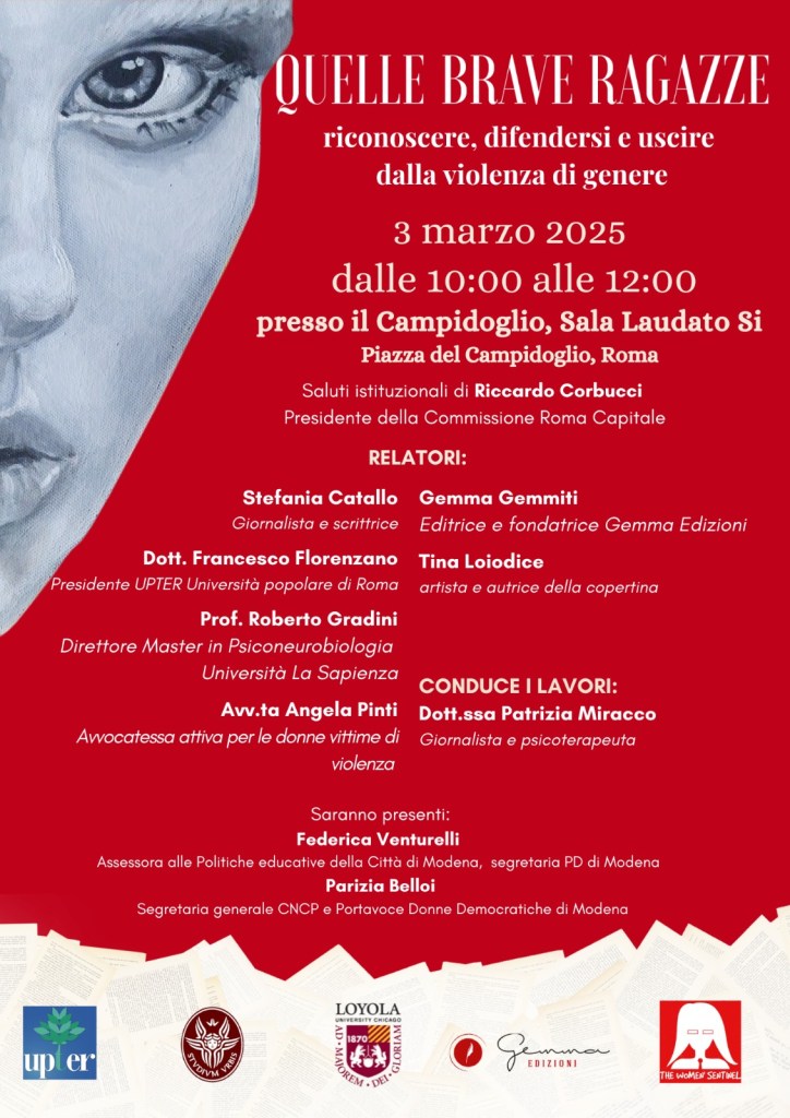 In occasione della Giornata Internazionale della Donna, lunedì 3 marzo si terrà un importante evento presso il Campidoglio, nella Sala Laudato sì, dalle ore 10:00 alle 12:00. L’evento prevede la presentazione del libro “Quelle brave ragazze” della giornalista Stefania Catallo, edito da Gemma Edizioni nel 2024, e un dibattito dedicato all’analisi del fenomeno della violenza di genere. Attraverso dati ufficiali, si approfondiranno le cause e si discuteranno le strategie di uscita da questa drammatica realtà. “Quelle brave ragazze” è un’opera che esplora la complessità e la gravità della violenza di genere, spesso fraintesa e minimizzata. Le testimonianze raccolte dall’autrice, che raccontano storie di donne vive ma segnate da esperienze dolorose, offrono una visione profonda e umana del fenomeno. Anche gli uomini hanno un ruolo centrale in questo racconto, contribuendo a illuminare le dinamiche patriarcali e il modello maschile disfunzionale alimentato da pressioni sociali e social network. Stefania Catallo approfondirà la semantica del fenomeno nei media e nella stampa, presentando il suo lavoro “Quelle brave ragazze”. Il prof. Francesco Florenzano presidente UPTER, discuterà dell’importanza della formazione culturale nel reinserimento socio-economico delle donne vittime di violenza, evidenziando la cultura come strategia di uscita. Gemma Gemmiti, editrice, analizzerà l’impatto della divulgazione culturale sulla violenza di genere, con particolare focus sul contesto scolastico. Il prof. Roberto Gradini esplorerà le menti criminali dal punto di vista psiconeurobiologico. Tina Loiodice, artista, parlerà del ruolo dell’arte nella sensibilizzazione e nell’educazione contro la violenza di genere. Infine, l’avvocata Angela Pinti si concentrerà sulla tutela giuridica e sulle implicazioni per i minori figli di donne vittime di violenza. L’evento si propone di stimolare una riflessione approfondita su queste tematiche cruciali. Saranno presenti all’evento Federica Venturelli, segretaria PD e Assessora alle Politiche Educative della città di Modena, e Patrizia Belloi, Segretaria Generale CNCP e Portavoce Donne Democratiche di Modena. I saluti istituzionali saranno a cura di Riccardo Corbucci, presidente della Commissione Roma Capitale.