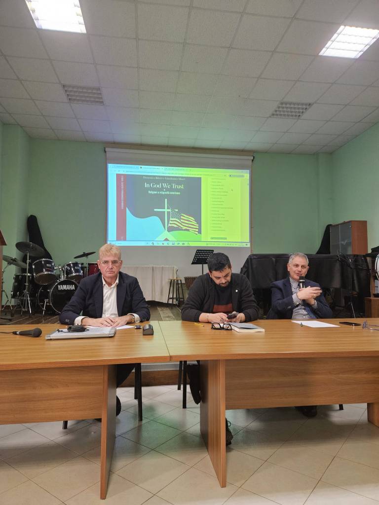 Nell’ambito della rassegna “L’Angolo del Professore”, curata dal Prof. Dario Aversa, presso il Liceo Scientifico-Linguistico di Ceccano, giovedì 27 febbraio, è stato presentato il volume di Gianfranco Macrì e Domenico Bilotti “In God We Trust. Religioni e religiosità americane” (Mondadori, Milano, 2024). Nella gremita Aula Magna Francesco Alviti dell’istituto scolastico non sono mancati inevitabili quanto opportuni riferimenti all’attualità internazionale di questi giorni, fornendo così ai presenti uno spaccato sul campo, lontano dalle retoriche, dai pregiudizi, dalle inesattezze. I lavori mattutini sono stati introdotti dal professor Dario Aversa, promotore della rassegna ed economista, che ha aperto una vivace interlocuzione con i due coautori convenuti, intorno ai temi più scottanti della odierna società statunitense (trasparenza della competizione politica, pena di morte, relazioni geopolitiche e civili). Gianfranco Macrì, professore presso l’Università degli Studi di Salerno e lì Direttore del Dipartimento di Scienze Politiche e della Comunicazione, ha ripercorso le tappe salienti della storia costituzionale americana, in particolare rimarcando l’originalità del sistema di tutela e promozione della libertà religiosa. Ha poi segnalato il mutamento di paradigma in atto circa il sempre più ricorrente uso politico delle proclamazioni e dei precetti di contenuto religioso, anche all’interno delle società democratico-secolari. Domenico Bilotti, professore all’Università Magna Graecia di Catanzaro, dove promuove un Osservatorio nell’ambito del progetto inserito nei Dipartimenti d’Eccellenza (MIUR 2023/2027), ha infine evidenziato alcuni casi di studio di natura giudiziaria sui rapporti tra legislazione federale e demografia religiosa. L’iniziativa, seguita da circa un centinaio di studenti dell’Istituto, ha infine ospitato un intenso momento di domande dal pubblico, che hanno ulteriormente impreziosito la mattinata di spunti e sollecitazioni.