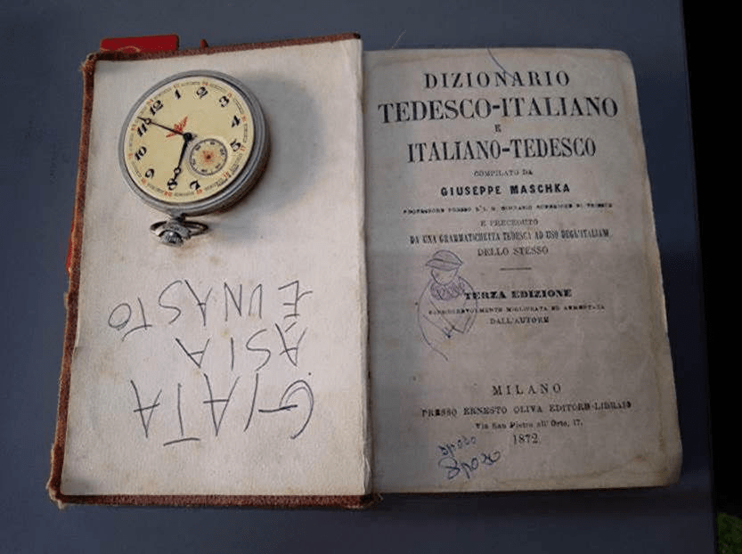 Ha lasciato a casa, non so se per mera dimenticanza , un dizionario “tedesco-italiano e italiano-tedesco edito nel 1872”, un paio di occhiali da sole, con le lenti colorate in celeste , per proteggere gli occhi dai riverberi del sole nei deserti africani, un orologio da taschino, tutti oggetti da me custoditi, ancora oggi , come vere e proprie reliquie.
