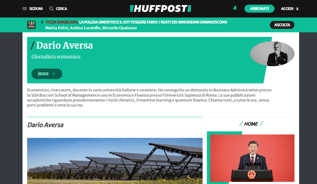 La prestigiosa testata di informazione gli ha affidato un blog che si occupa di transizioni alle nuove tecnologie per la produzione di energia. Il suo primo articolo, che potete leggere qui , affronta la necessità di offrire tassi vantaggiosi nei prestiti alle aziende che investono nelle economie a impatto zero.
