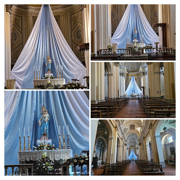 L’aveva pensato mons. Piroli, con una corona in ferro battuto da cui pendono degli addobbi di stoffa, bianca e celeste, per onorare, sull’altare maggiore la Vergine Maria cui è dedicato il mese di maggio. Sono tantissimi i ceccanesi che hanno foto di celebrazioni familiari, battesimi, comunioni, cresime, matrimoni, in cui lo sfondo della collegiata di S. Giovanni rifulge dell’addobbo mariano. Dopo la morte dell’arciprete nel 2002, se ne perse la tradizione che ora è stata ripristinata dal nuovo arciprete, don Italo Cardarilli e l’effetto è davvero bello