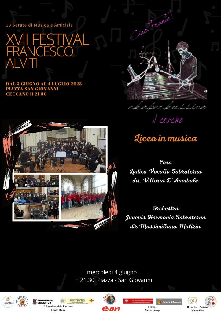 Dopo la serata inaugurale con De Andre, mercoledì 4 giugno saranno di scena i giovani musicisti del Liceo di Ceccano con il coro Ludica Vocali Fabraterna e l’orchestra Juvenis Harmonia Fabraterna, diretti rispettivamente da Vittoria D’Annibale e Massimiliano Malizia. Appuntamento alle 21,30 a Ceccano, in Piazza S. Giovanni