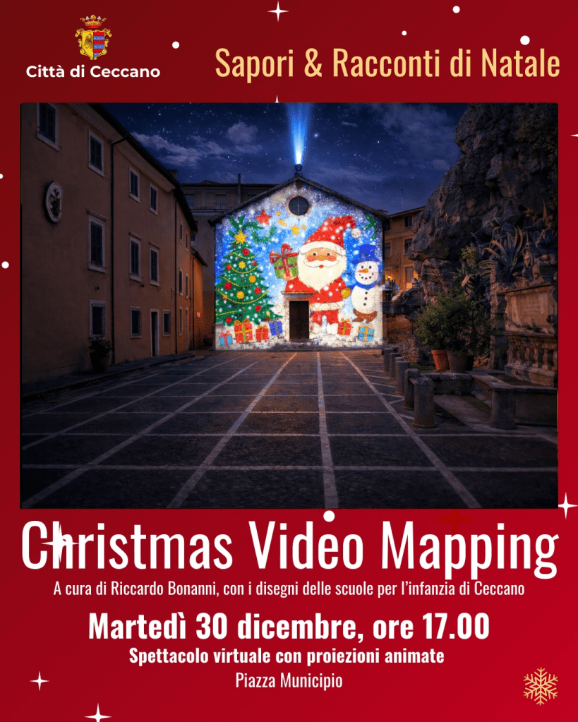 Questa volta le immagini non copriranno la facciata di Palazzo Antonelli ma quella di S. Sebastiano con i disegni natalizi dei bambini delle scuole dell’infanzia di Ceccano che sono stato rielaborati da Riccardo Bonanni, artista appunto del videomapping. Si tratta di una tecnica digitale che proietta immagini su edifici, monumenti, oggetti per trasformarle in schermi dinamici e interattivi, creando illusioni ottiche spettacolari e immersive che giocano con le geometrie dell’oggetto, animandole e arrivando anche a raccontare storie. La precedente esperienza ci fu nel febbraio del 2023 e durò per 15 giorni sulla facciata di Palazzo Antonelli, fu curato dall’Accademia di Belle Arti, sulle tematiche dell’inquinamento ambientale della Valle del Sacco e realizzato tecnicamente da una società di Latina. Il comune investì allora 15 mila euro, un contributo dato da Itelyum, la raffineria ai margini di Bosco Faito. Le spese per l’attuale iniziativa sono preventivate in circa 1300 euro, come si apprende da una determinazione pubblicata all’albo. La proiezione ci sarà martedì 30 dicembre, a partire dalle 17, in piazza Municipio.