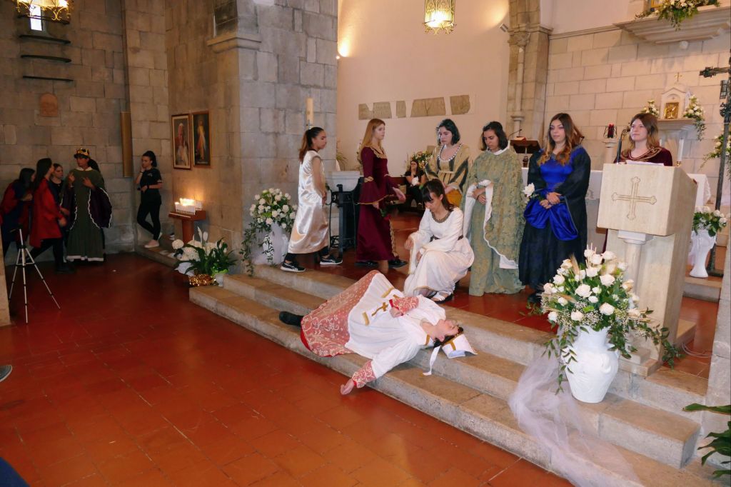 Oggi, 29 dicembre, si celebra la memoria di S. Tommaso Beckett, l’arcivescovo di Canterbury, ucciso dal suo re, Enrico II, proprio sui gradini della cattedrale britannica, per essersi opposto alle decisioni del sovrano. Le sue reliquie, compreso un brandello delle vesti arrossate dal suo sangue, arrivarono a Ceccano, per un legame tra i cardinali della Casa de’ Ceccano con il grande santo. Nel 2018, il Liceo di Ceccano, rievocò il fatto con un testo e una rappresentazione teatrale, nella chiesa di S. Maria a fiume, di cui riportiamo la cronaca: Il lungo viaggio delle reliquie di Tommaso Becket, l’arcivescovo ucciso nella cattedrale di Canterbury nel 1170 dai sicari di Enrico II per esserglisi opposto nella sanguinosa lotta per le investiture, e proclamato santo nel 1173, prese le mosse proprio dalla grande cattedrale britannica, per approdare prima a Ceccano, poi a Carpineto e quindi ad Anagni, dove tutt’ora le reliquie sono venerate. A prendersi cura delle sacre reliquie furono i Conti di Ceccano che tributarono subuto a San Tommaso una devozione particolare. Di tutte queste vicende, spesso avventurose, si narra in un libro che è stato presentato martedì 5 giugno 2018 nella Chiesa di S. Maria a fiume, dove inizialmente le reliquie furono venerate. Nello splendido santuario, tanto caro alla spiritualità dei ceccanesi, si sono susseguiti una serie di interventi con gli specialisti della cattedra di Storia Medievale di Roma III, guidati dalla titolare , prof.ssa Maria Teresa Carciogna, la prof.ssa Tennenini, che ha curato l’edizione bilingue, italiana ed inglese, del libro De vestimento Sancti Thomae cantariensis, le autorità che hanno patrocinato il lavoro di ricerca, i comuni di Anagni e Ceccano, con i rispettivi primi cittadini. E’ seguita la rappresentazione di assassinio nella Cattedrale, il dramma di T. S. Eliot in cui viene narrata la terribile uccisione dell’arcivescovo di Canterbury. Il lavoro vedrà in scena gli allievi delle classi II D e III G del Liceo, guidati dalla prof.ssa Fumarola, il coro Ludica Vocalia Fabraterna e l’orchestra Juvenis Harmonia Fabraterna, guidati da Vittoria D’Annibale e Massimiliano Malizia.